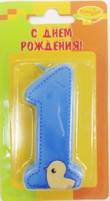 РАСПРОДАЖА Свеча Цифра 1 голубая 7см.