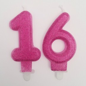 РАСПРОДАЖА СВЕЧА ЦИФРА 16 РОЗОВАЯ С БЛЕСТКАМИ 6СМ