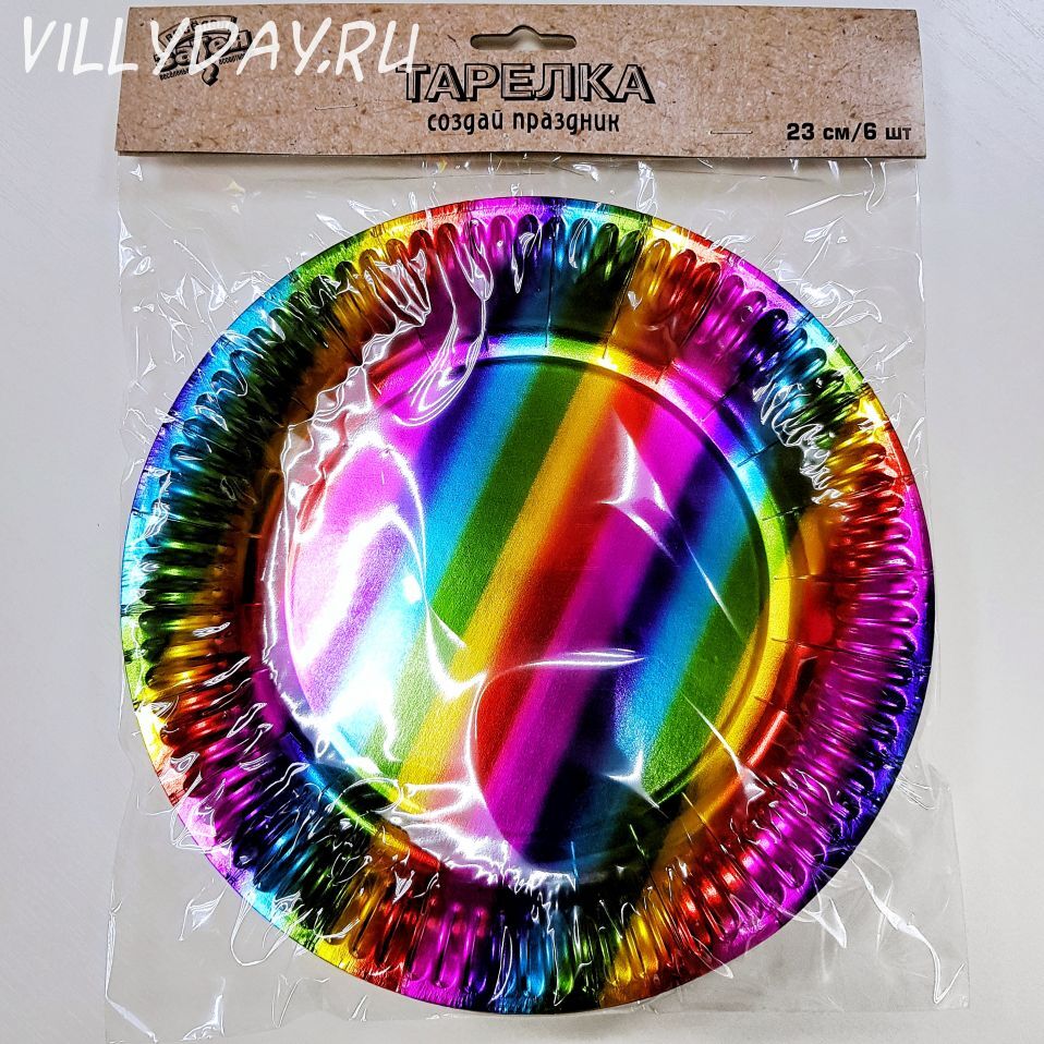 Тарелка фольгированная радуга 17см.