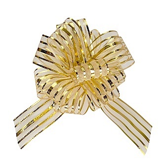 Текстильный бант Шар Тонкие полосы Золото Металлик 15 см.