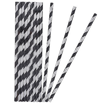Трубочки для коктейлей Полосы Черный/Серебро металлик 12 шт.