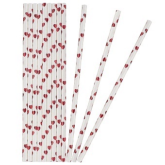 Трубочки для коктейлей Сердечки Белый/Красный металлик 12 шт.