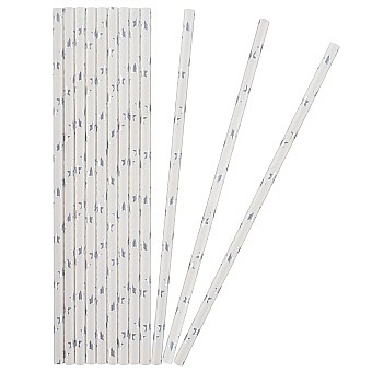 Трубочки для коктейлей Серебристые звезды Белый/Серебро металлик 12 шт.