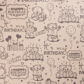 Упаковочная бумага, Крафт (0,7*1 м) Мишки Тедди, Черный