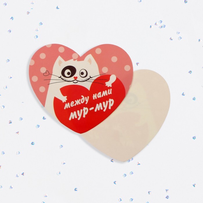Валентинка открытка одинарная "Между нами мур-мур!" котик, сердце